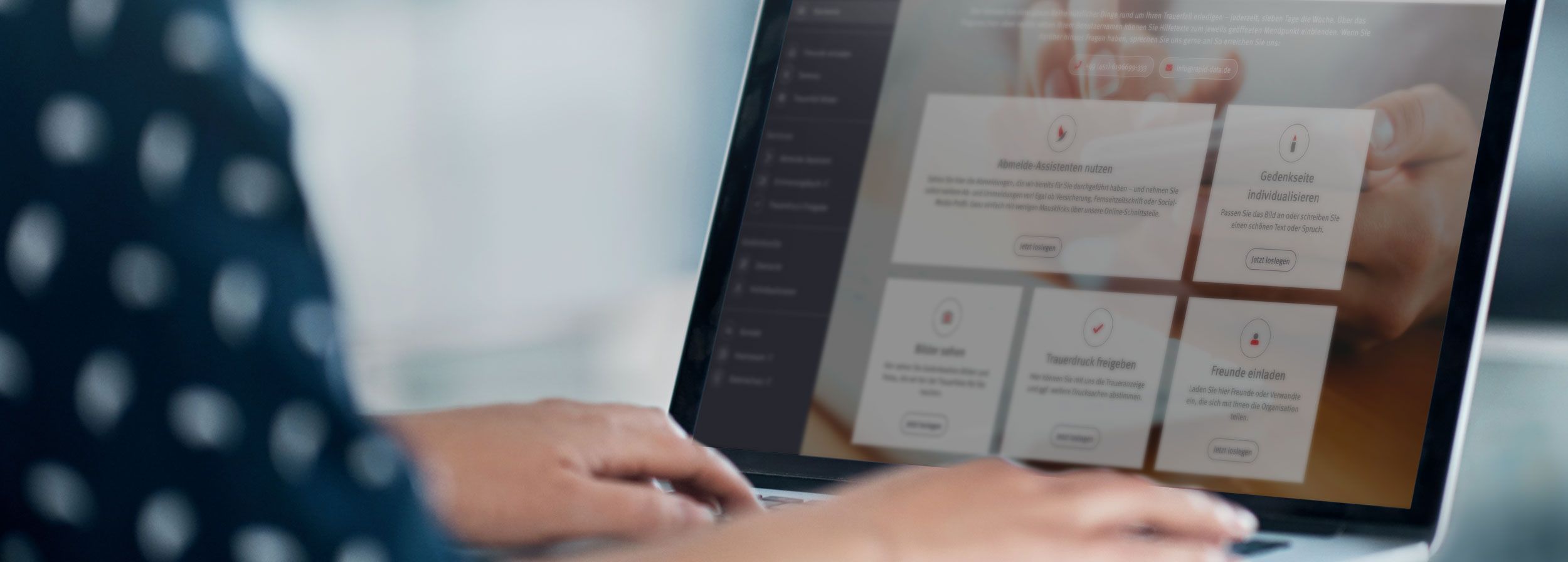 Hier können Sie viele wichtige Dinge im Trauerfall per Mausklick regeln, Erinnerungen an den Verstorbenen bewahren, Ihre Trauerdrucksachen inklusive Empfängerlisten mit uns abstimmen und Ihre persönliche Musikauswahl für die Trauerfeier zusammenstellen. Zu jeder Zeit, bequem von zu Hause aus.