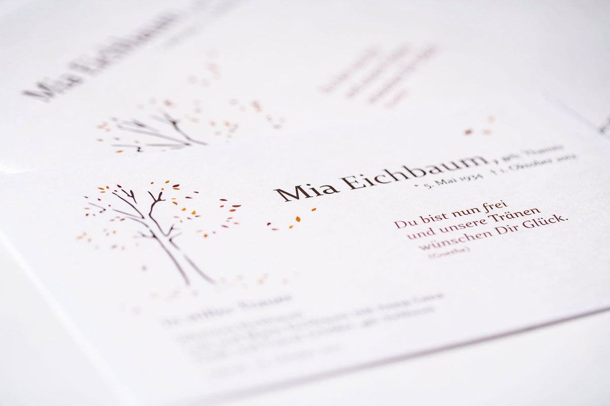 Beim Trauerdruck sollte alles fehlerfrei und sorgfältig abgestimmt sein. Das geht im Kunden-Center besonders leicht! Hier sehen Sie die Trauerdrucksachen, die wir individuell für Sie entwerfen, mit allen wichtigen Angaben auf einen Klick.